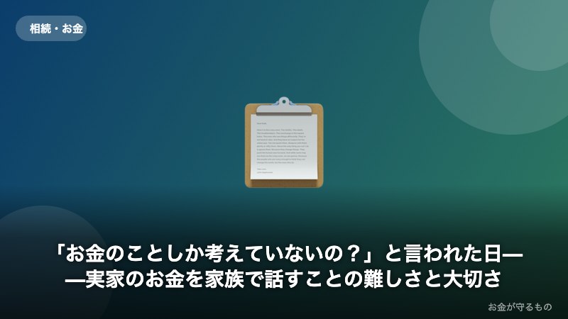 家族のお金の話は、難しい。でも、避け続けることがいちばん家族を傷つけるかもしれません。あなたが「お金の話をしようとしていること」は、きっと間違っていない。ただ、少しだけ「感情」を最初に置いてあげてください。