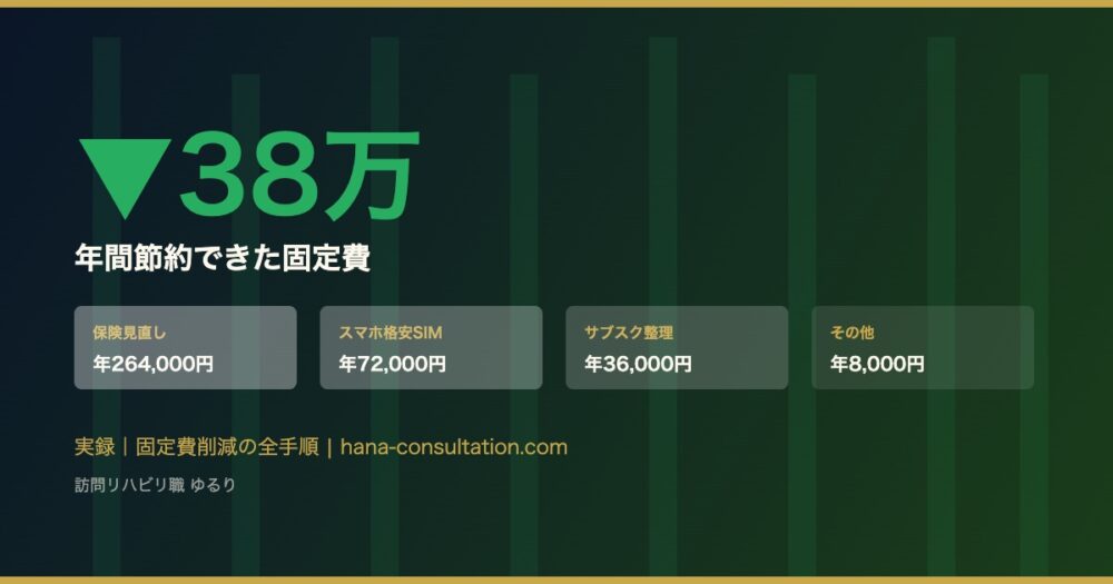 実訪問リハビリ職として働きながら、自分の固定費を全部洗い出したとき、月3万円以上の節約になったことがありました。