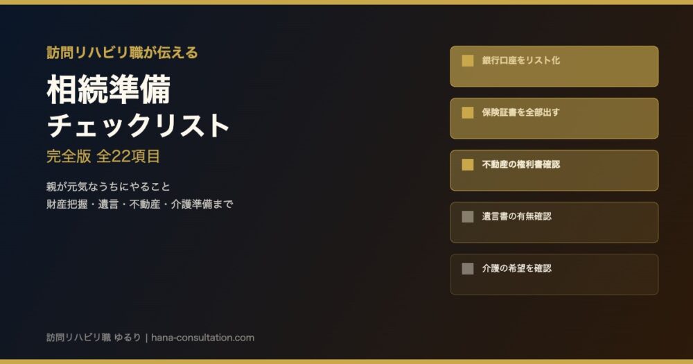 【相続準備チェックリスト完全版】訪問リハビリ職が伝える「親が元気なうちにやること」全22項目